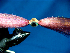 - Tie in the Purple Flash extending only towards the rear – this creates fewer tangles when fishing the fly.